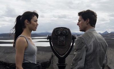 Визуализация в «Обливионе» на высоте! Картины огромной бесконечной пустоты заброшенного внешнего мира тесно переплетаются с внутренним беспокойством героя. И то, как Том Круз лихо рассекает на мотоцикле по пустыне среди брошенных подлодок и крейсеров, производит неизгладимое впечатление.