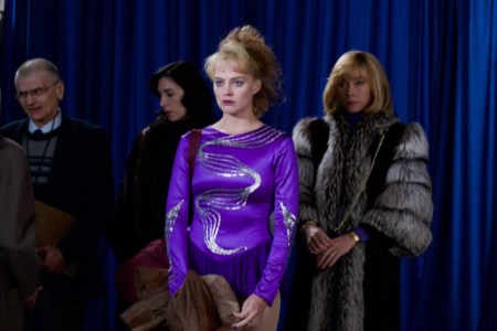 Весь фильм нам говорят о том, что главная героиня — чертовски талантливая спортсменка, которой не везет с предвзятыми судьями, относящимися к ней как к крестьянской кобыле с чрезмерно сточенными зубами, заглянувшей на ипподром и вставшей в один ряд с чистокровными скакунами. Прыгает отменно, но костюмчик сидит криво, сшит бедно, да и музыка для выступления выбрана безвкусная. Если присовокупить к несчастьям Тони мать-изверга и ранний брак с мужем-драчуном, то выходит чистой воды драма о поломанной судьбе в стиле Теннесси Уильямса или Джона Стейнбека. Но для рассказа о своей героине Гиллеспи выбирает не ее, а самый ироничный из возможных киножанров — черную комедию.